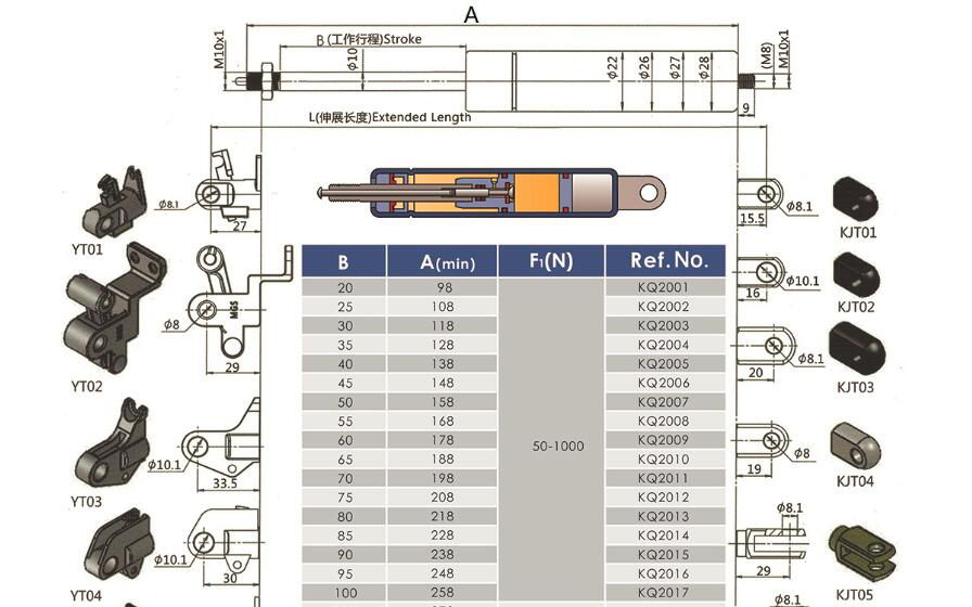 注:由于氣彈簧是非標準的,以上僅為型號的一部分。我們可以根據客戶的要求定制。